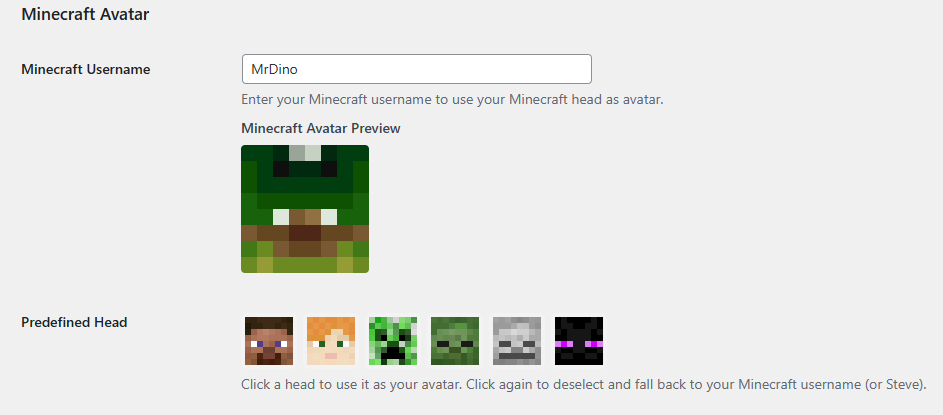 Replace WordPress avatars with Minecraft-style heads using Minecraft usernames (and future custom skin features).