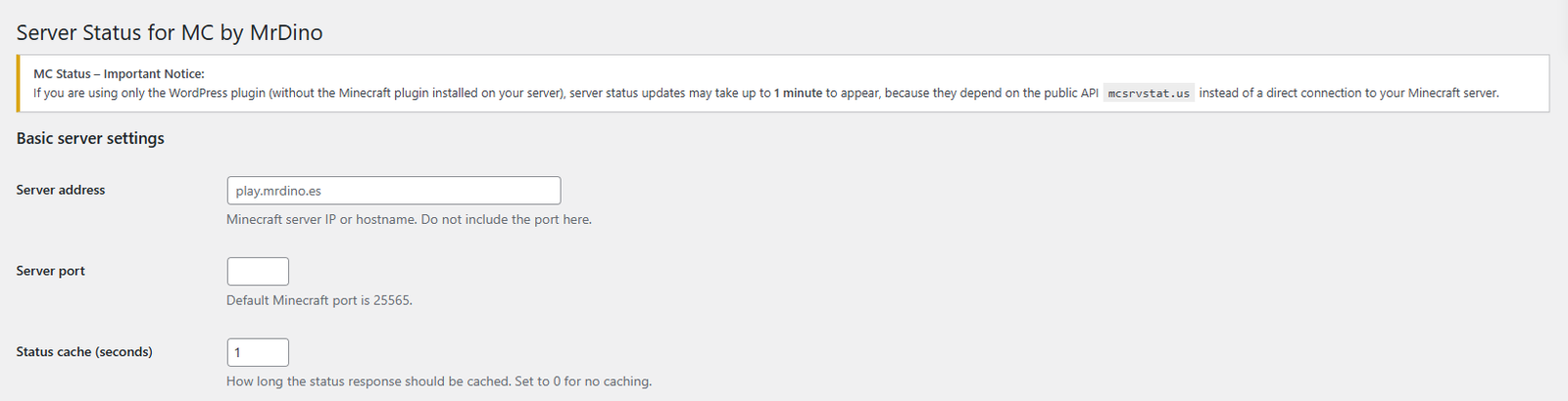 Display your Minecraft server status on your WordPress site. Basic mode works without any Minecraft plugin.